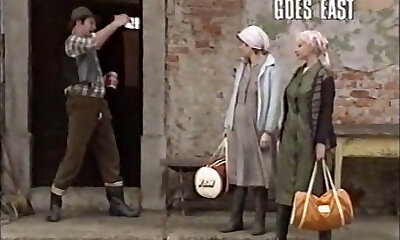 Sexy and cute village girls in the barn having four-way