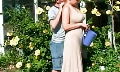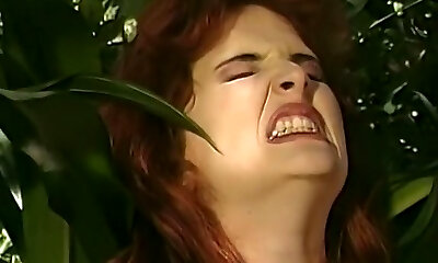 неряшливая и грудастая рыжая кукла милфа занимается сексом в лесу
