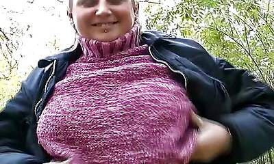 Sexy German black-haired BBW loves getting her massive boobs covered with cum