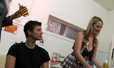 Bluttie Kat blonde gives Terry Red anal sex and blow-job